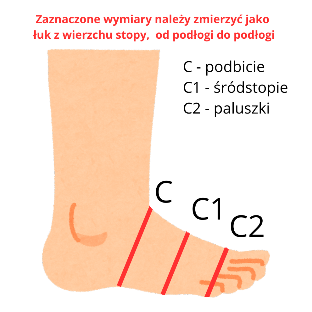 Jeśli wynik jaki otrzymasz nie pokrywa się idealnie z tym co widzisz w tabeli dla danego rozmiaru, to nie problem. Każdą parę, z każdej kategorii możemy uszyć dla Was na wymiar. Wybierz najbliższy pasujący rozmiar, a w uwagach podaj nam realne wymiary stopy – A, B, C, C1 i C2. My uszyjemy buty na wymiar.